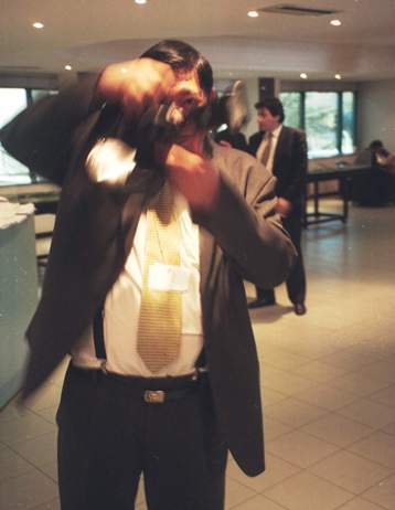 Last we have a picture of Casto Abundo who was photographed while taking a picture of Sam Sloan who was taking a picture of Casto Abundo who was taking a picture of Sam Sloan. Abundo is an office administrator and the ratings administrator of FIDE. Regardless of who is elected, Abundo will probably have a job because he has been the man in charge of the daily affairs of FIDE since 1986 and is probably irreplaceable.