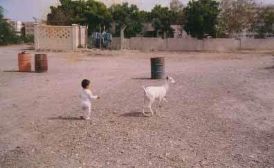 This photo was taken in front of my house in Fujairah. The house in the photo is not mine but rather the house across from where we lived. My daughter Jessica was about one and a half years old at the time of this photo.