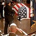 Downstairs, Officer Eric Boggs missed the service because he was guarding DeLay's office door, which was draped in black. Chestnut was not only his colleague but also his neighbor, and Boggs said that the man he called J.J. was "one of the finest men that I've known." He said that he would have a chance later to go up and view the coffins quietly.
