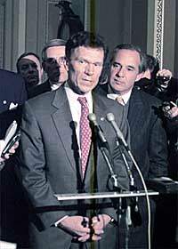 The Senate minority leader, Tom Daschle, center, Tuesday spoke to reporters with Senators John B. Breaux, left, and Robert G. Torricelli.